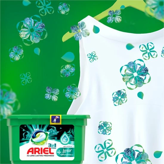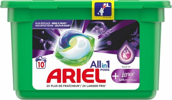 Uitzonderlijke reinigingskracht in een kleine capsule. Het unieke ontwerp van de Ariel Allin1 Pods +Unstoppables wasmiddelcapsules met verschillende compartimenten houdt de ingrediΓ«nten stabiel en gescheiden totdat ze de was bereiken, waar ze een supergeconcentreerde reinigingskracht geven. De innovatieve laag van de Ariel wastabletten lost bij contact met water volledig op en geeft hun krachtige reinigingskracht vrij die een heleboel soorten vlekken bestrijdt. Zo krijg je het beste vloeibare wasmiddel van Ariel, met de juiste hoeveelheid wasmiddel. Gebruik samen met Lenor wasverzachters en Unstoppables, een geurbooster voor de was, voor extra zachtheid en frisheid. Let op. Dit product kan schadelijk zijn en ernstige verwondingen veroorzaken. Ariel pods buiten het bereik van kinderen houden. Bezoek www.keepcapsfromkids.eu voor meer informatie.