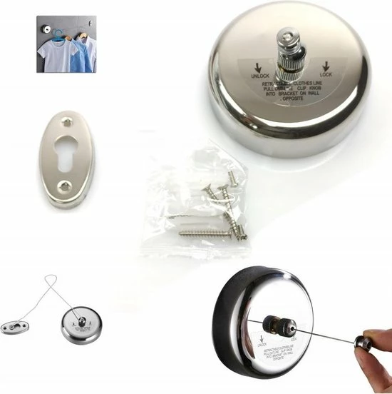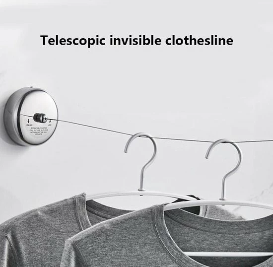Drogen van kleren was binnen nog nooit zo gemakkelijk deze uittrekbare drooglijn. Deze drooglijn bestaat uit een spanner en haak, welke beiden eenvoudig zijn te monteren aan de muur en direct klaar voor gebruik. De drooglijn is uittrekbaar tot 3 meter en dankzij kleine formaat is de uittrekbare waslijn ruimtebesparend en in iedere ruimte op te hangen, zoals in badkamers, balkons en/of buiten in de tuin. Dankzij het roestvrij staal ontwerp roest het product niet en is deze zeer duurzaam. De waslijn zelf bestaat uit een sterk gevlochten staaldraad, wat maar liefst 10kg wasgoed kan houden.