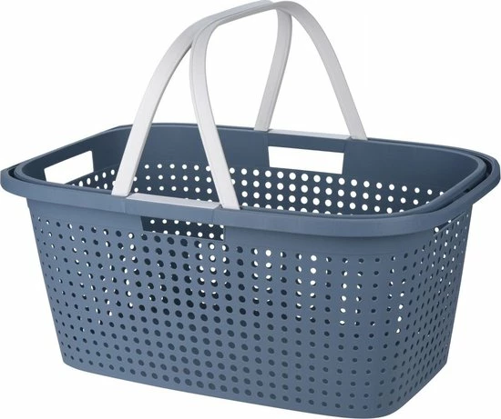 Coupon π Bella Blauwe Wasmand Met Witte Handvatten 38 Liter Van 60 Cm – Draagwasmanden – Wasgoedmand – Mand Met Handvatten β¨