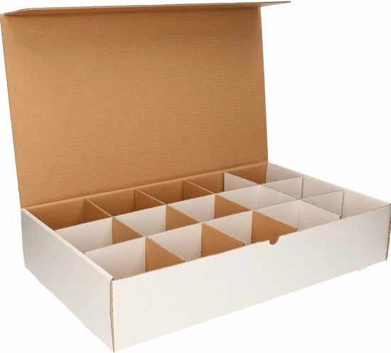 Kerstballen opruimen/opbergen doos voor 15 Kerstballen van 10 cm. Handige doos inclusief vakverdeling voor het opbergen van uw Kerstballen of Kerstversieringen. De doos heeft een insteekklep (deksel met klep) om hem gemakkelijk te sluiten. Formaat doos: 52,9 x 31,4 x 10,3 cm. Formaat van de vakjes: ongeveer 10 x 10 cm. Geschikt voor 8, 9 en 10 cm Kerstballen, folie slingers of andere Kerstversieringen.
