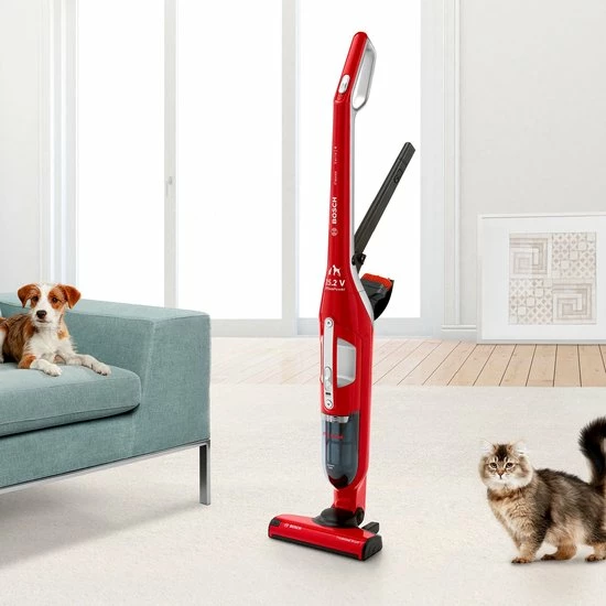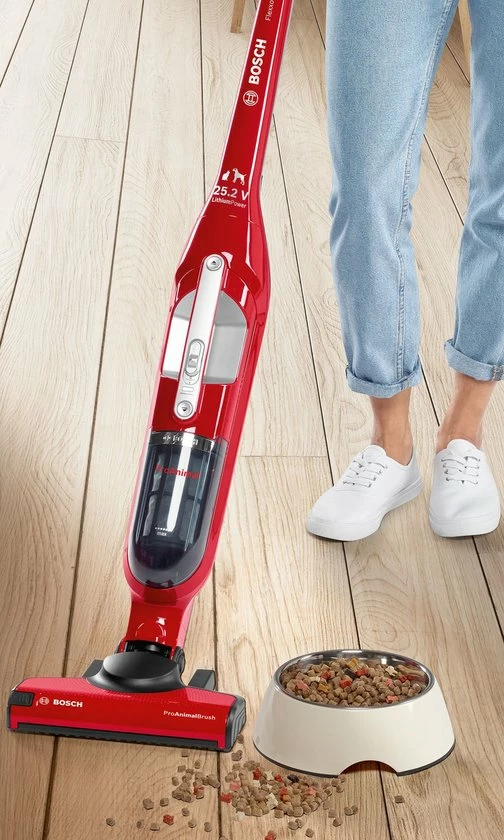 De Bosch ProAnimal Flexxo ZOO’O BBH3ZOO25 is de steelstofzuiger voor mensen met een huisdier. Jouw huisdieren maken een belangrijk onderdeel uit van je leven. Je kunt ze niet missen, maar de haren die ze achterlaten wel. Met de ProAnimal Flexxo ZOO’O BBH3ZOO25 steelstofzuiger van Bosch ben je dierenharen zo kwijt. De speciaal ontworpen zuigmonden maken het opzuigen van deze haren heel gemakkelijk, ook bij lastig te reinigen vloeroppervlakken. De gecombineerde accessoires zijn rechtstreeks in het apparaat geïntegreerd. Zo kun je altijd makkelijk en snel overal schoonmaken. Bovendien heeft deze steelstofzuiger een lange werktijd tot 50 minuten en zorgt de krachtige accu voor hoge prestatie en korte oplaadtijd. Zo hou je nog meer tijd over voor je harige vriendjes.