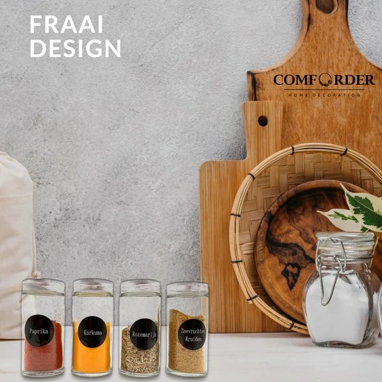 De kruidenpotjes set van Comforder bevat alles wat je nodig hebt. Naast de 12 kruidenpotjes met multifunctionele strooideksel en metalen draaideksel ontvang je ook nog een inklapbare trechter, een schoonmaaktool, 60 voorgedrukte stickers, 40 blanco stickers en een krijtstift voor deze stickers. Zo kun je de potjes gemakkelijk vullen met jouw kruiden en staat alles mooi en overzichtelijk in jouw kast of kruidenrek.