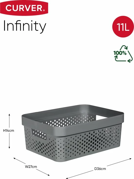 - Curver Infinity Recycled Dots Opbergbox 11L – Antraciet