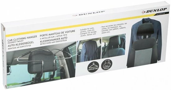 Zorg ervoor dat je kleren ongekreukt de auto weer uitkomen met deze kledinghanger van Dunlop. Je bevestigt hem eenvoudig met de adapter-klemmen aan de hoofdsteun van de stoel van je auto. De hanger van 50 centimeter breed houdt colberts, jassen en jurken mooi in vorm.