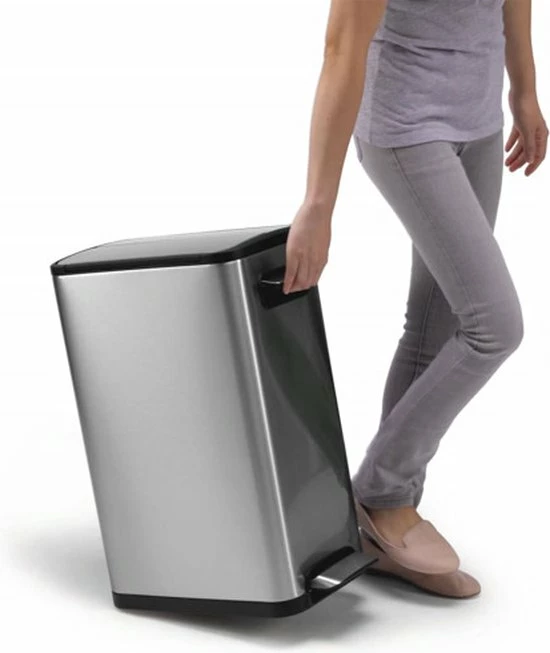 Met het handvat aan de voorzijde en de geรฏntegreerde wielen is de vuilnisbak eenvoudig te verplaatsen. Hierdoor is hij een ideale afvalcontainer voor elke moderne keuken.