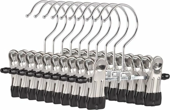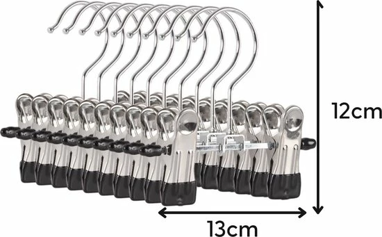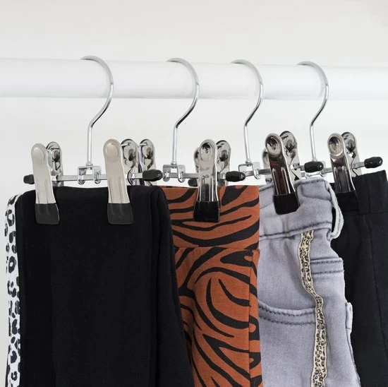 De stevige kleine broekhouders zijn multifunctioneel ontworpen. Zo zijn de kleerhangers uiterst geschikt voor het overzichtelijk ophangen van babykleding. De broek of pantalon kan gemakkelijk aan de klipjes worden gehangen en daarna in de kast worden geplaatst. Zo bergt u uw babykleding netjes en overzichtelijk in de kledingkast op. Bovendien kunnen de hangers gebruikt worden als laarzenhouder. De hangers zijn gemaakt van metaal en zijn zilver van kleur. De klippers van de hangers zijn gemaakt van plastic, hier zitten geen scherpe randen aan om schade op de kleding te voorkomen. De kledinghangers zijn zeer compact, waardoor ze een ruimtebesparende werking hebben en door de 10 stuks bent u direct klaar om uw kledingkast overzichtelijk in te delen.