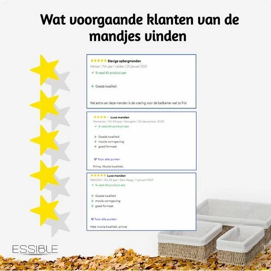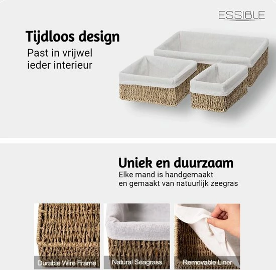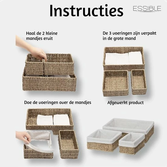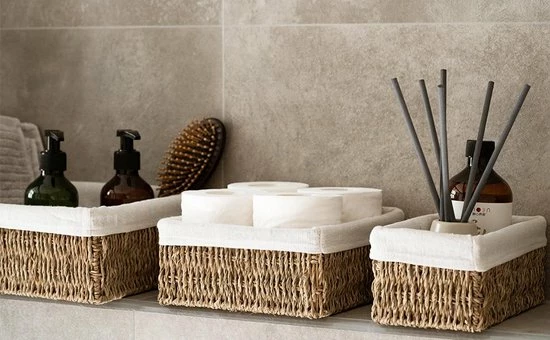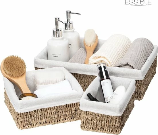 Deze 3 opbergmanden gemaakt van riet bieden de ideale oplossing voor het opbergen van kleinere items in huis. De kleine opbergmanden zijn geschikt voor bijvoorbeeld; doucheproducten, sleutels, bestek, accessoires en nog veel meer. De grote opbergmand is geschikt voor bijvoorbeekd; boeken, toiletspulletjes, handdoeken en nog veel meer. Het zijn stijlvolle manden, een aanwinst voor uw interieur. Plaats de manden in de keuken, op kantoor of in uw badkamer.