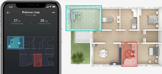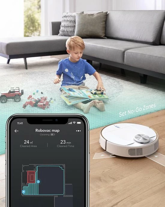 - Nauwkeurige Ai-kaarttechnologie: geniet van slimme reinigingen die dankzij de intelligente kartering in real-time ideaal op je huis zijn afgestemd. Je bepaalt zelf waar RoboVac mag reinigen en waar niet.