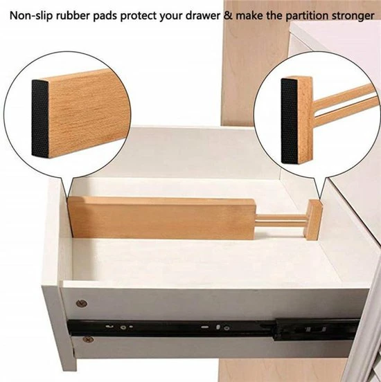 Deze verstelbare keukenopbergers zijn ideaal om je keukenlades helemaal naar wens in te richten en in te delen zoals jij dat wilt! Er zijn geen complete en wanordelijke lades in de keuken, badkamer of kantoor. Met deze eenvoudig aan te passen organisatoren kunt u echt bestellingen naar uw gezin brengen. De organizer is gemaakt van 100% milieuvriendelijk bamboe, met een natuurlijke en mooie uitstraling. Ladeverdeler van Bamboo is makkelijk in gebruik, je hoeft hem gewoon in of uit te schuiven. U hoeft de organizer alleen maar in de la te plaatsen en de veer zorgt ervoor dat de organizer perfect op zijn plaats wordt bevestigd. Op deze manier kunt u elke lade naar behoefte indelen. De organizer is gemaakt in een standaard keuken- en bureaulade-formaat en kan zo worden aangepast dat hij in vrijwel elke lade gebruikt kan worden.
