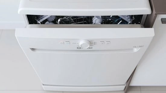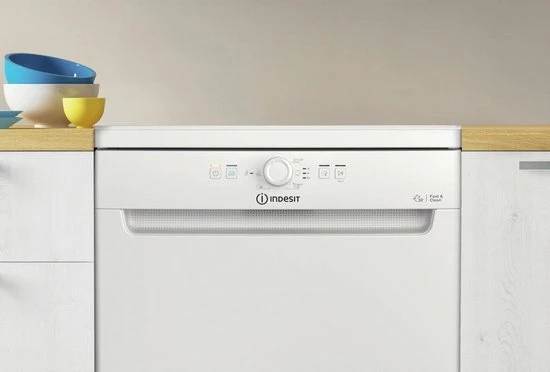Indesit DFE 1B19 14. Apparaatplaatsing: Vrijstaand, Productafmeting: Volledige grootte (60 cm), Deurkleur: Wit. Geluidsniveau: 49 dB, Droogklasse: A, Temperatuur (max): 65 ยฐC. Manden verstelbare plaatsing: Lager, Nee. Energie-efficiรซntieklasse: A+, Energieverbruik per cyclus: 0,6 kWu, Waterconsumptie per cyclus: 12 l. Breedte: 600 mm, Diepte: 590 mm, Hoogte: 850 mm