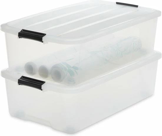 Deze set opbergboxen van Iris Ohyama bestaat uit 2 boxen met elk een inhoud van 40 liter, die je door het transparante materiaal snel kan identificeren. Ideaal voor het opbergen van je spullen en wanneer je de box even niet nodig hebt kan je ze makkelijk in elkaar schuiven om ruimte te besparen. De box is voorzien van een deksel die op zijn plaats gehouden wordt door stevige handgrepen, door deze deksel kan je de boxen goed stapelen. Dankzij de inkeping aan de onderkant van de box kan je deze op hogere plekken plaatsen. Met de wieltjes aan de onderkant is deze box ook makkelijk te verplaatsen wanneer er zwaardere spullen in zitten.