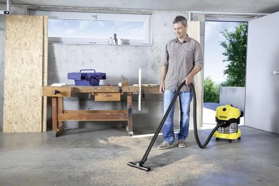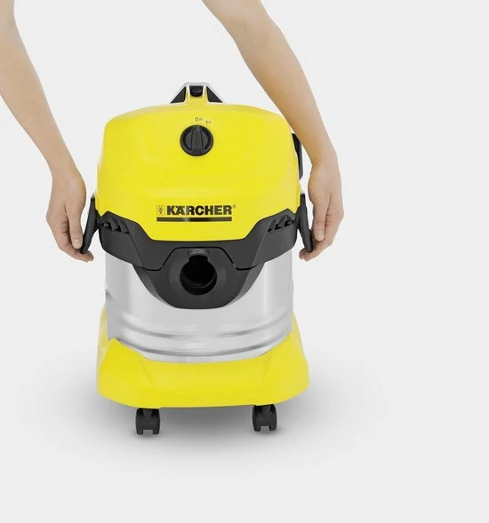 De multifunctionele alleszuiger WD 4 Premium uit de middenklasse is superkrachtig met een energieverbruik van slechts 1.000 watt. Het toestel is uitgerust met een robuust en roestvrijstalen vuilreservoir van 20 liter en een vlakfilter in een filtercassette, die snel kan worden verwijderd door deze simpelweg uit te klappen – zonder enig contact met het vuil. Bovendien is het filter geschikt voor het opzuigen van zowel droog als nat vuil zonder dat u het filter moet verwisselen. Daarnaast is het toestel voorzien van het Pull & Push-blokkeersysteem, een ergonomische handgreep en praktische opbergruimte voor de kabel en het toebehoren op het toestel. De handgreep kan verwijderd worden, waardoor de toebehoren direct op de zuigslang kunnen worden aangesloten. In combinatie met de innovatieve zuigslang en vloerzuigmond met clip en twee rubberen strips en twee borstelstrips zorgt dit toestel voor het optimaal opzuigen van alle soorten vuil. Dankzij de parkeerpositie kunnen de zuigbuis en de vloerzuigmond tijdens werkonderbrekingen handig worden opgeborgen.