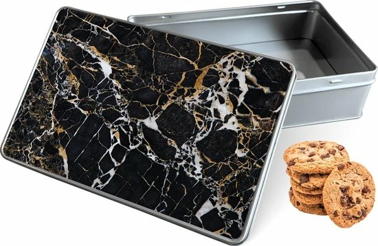 Bij koffie of thee hoort natuurlijk een koekje. Met de rechthoekige koektrommel met Zwart Goud Marmer staat er nu een echte eye catcher op tafel. De koeltrommel is vervaardigd uit aluminium materiaal en beschikt over de afmetingen: 20x13x5cm. Dit maakt de trommel groot genoeg om koekjes, foto’s of briefjes in te bewaren. Het Zwart Goud Marmer design wordt met de grootste zorg en kwaliteit afgedrukt, waardoor je lang kunt genieten van een unieke koektrommel.