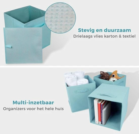 De organizers zijn zeer stevig en gemaakt van drielaags vlies karton en afgewerkt met hoogwaardig textiel. De organizers zijn opvouwbaar, wat super fijn is mocht je ze even niet nodig hebben. Tot slot zijn de organizers waterafstotend, te gebruiken in vochtige ruimtes en makkelijk af te nemen met een vochtige doek.