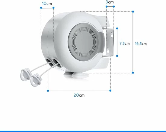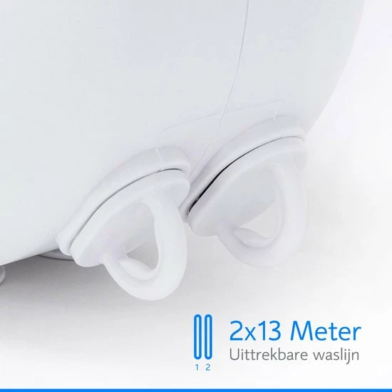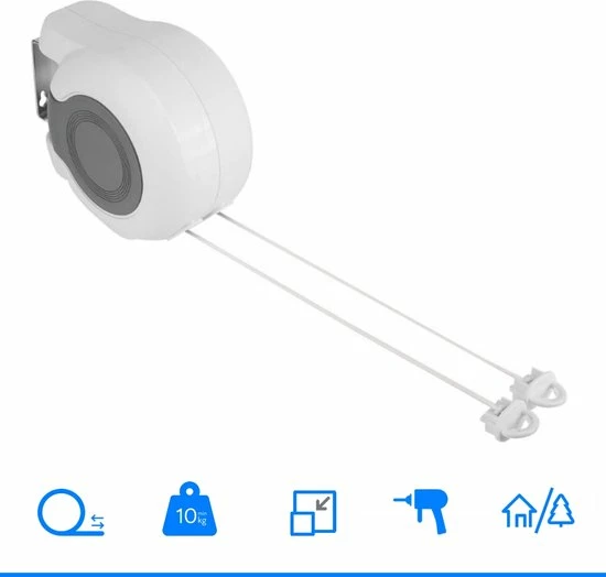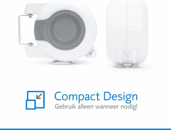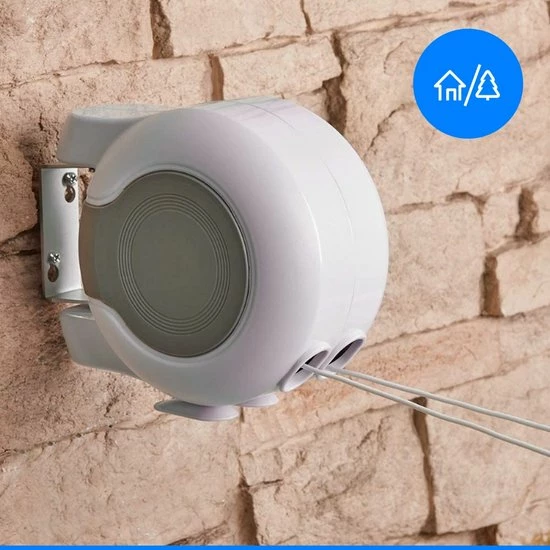 Het subtiele & compacte design zorgt ervoor dat je alleen merkt dat de drooglijn er hangt als je hem nodig hebt. Gebruik je hem even niet dan rol je de waslijn automatisch in en kun je de kast van de lijn opzij duwen. Het sterke materiaal dat is gebruikt voor de waslijn zorgt ervoor dat de lange lijn genoeg kracht heeft om minimaal 8 kilogram aan was te houden. Met de haakjes aan de onderkant van de kast zet je de lijn gemakkelijk vast op de door jou gewenste lengte. Deze roldrooglijn is geschikt voor zowel binnen als buiten.