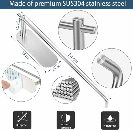 - Roestvrij Staal: Het zonder boren papierrolhouder is gemaakt van hoogwaardig en duurzaam roestvrij staal, met een glad oppervlak, krasbestendig en stabiel, en het is niet gemakkelijk te roesten, zelfs niet in een vochtige omgeving.