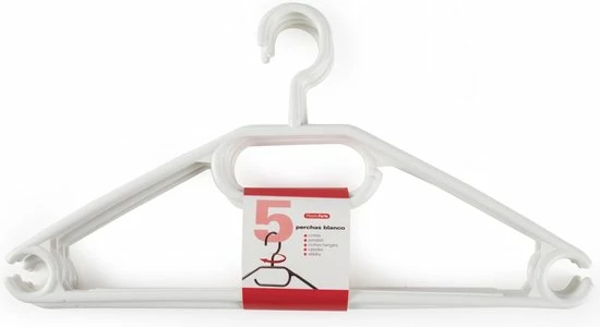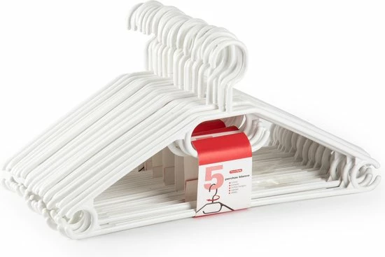 10x Garderobe kledinghangers wit. Set van 10x stuks kledinghangers/kleerhangers in de kleur wit. Materiaal: kunststof. Afmetingen per hanger: 40,5 x 21 x 0,6 cm. De haak is draaibaar. U ontvangt 2 verpakkingen van 5 stuks. Kledinghangers voor een kledingrek of kledingkast.