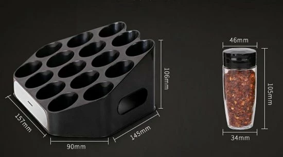 Dit is een compacte kruiden / specerijen rek. Daarom kan je hem vrijwel overal neerzetten zonder dat hij in de weg staat. Ondanks dat hij compact is, biedt hij meer dan voldoende ruimte voor al uw kruiden en specerijen.