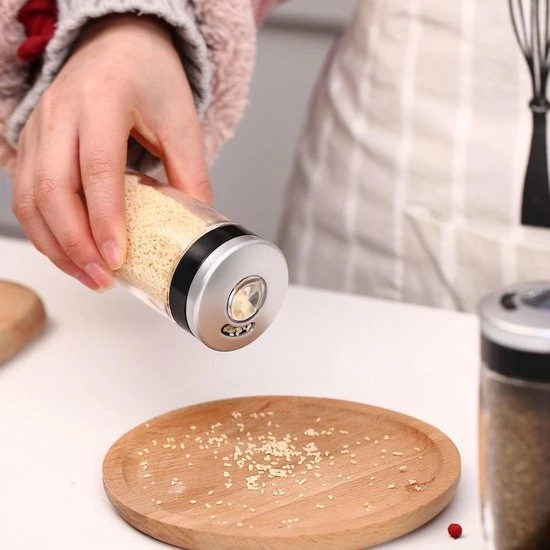 Glazen kruiden / specerijenpotjes voorzien van strooi deksel.