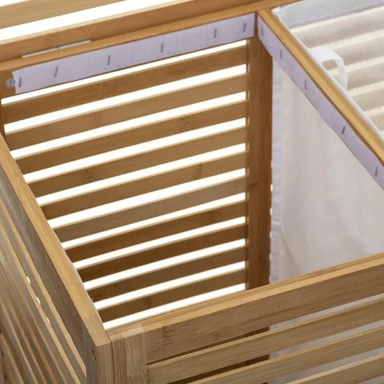 De Margot wasmand van Eazy Living is een praktische en makkelijke wasmand. De bamboe wasmand is opgedeeld in twee vakken met twee uitneembare waszakken. Zo kan je makkelijk je was sorteren en kan je op een stijlvolle manier je was uit het zicht houden. Afmetingen 60 x 40 x 58 cm