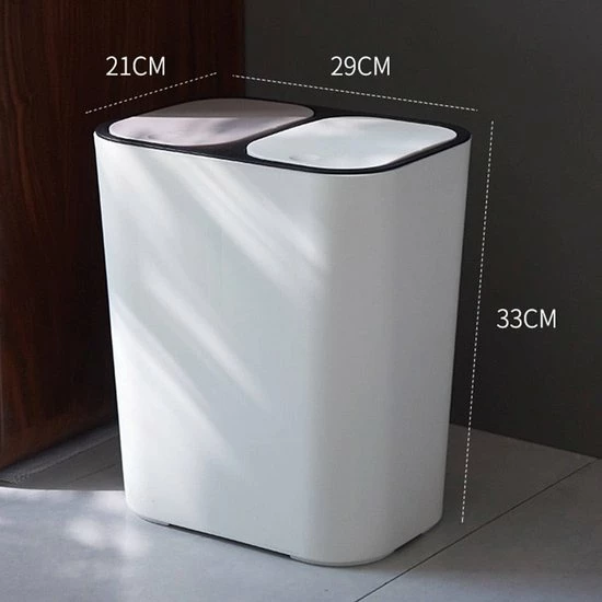 - Dubbele COMPARTIMENT RECYCLE BIN – Met 2 aparte compartimenten en een strakke look kan de 12L vuilnisbak uw afval en recyclebare materialen netjes sorteren in één handige, ruimtebesparende ruimte