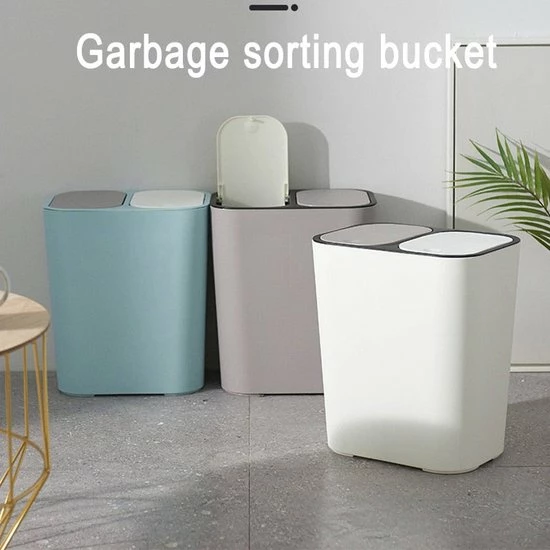 Prullenbak Rechthoek Plastic Drukknop Dual Compartiment 12liter Recycling Afval Vuilnisbak Geclassificeerd Vuilnisbak.