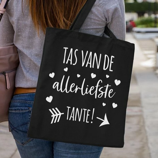 Top 10 π Merkloos Tas – Katoenen Tas – Tante – Tas Van De Allerliefste Tante! – Lange Hengsels – Boodschappentas – Big Shopper – Stuks 1 – Zwart π₯°