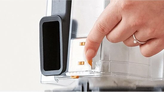 Een hygiรซnisch resultaat doordat grof vuil en fijnstof uitstekend van elkaar gescheiden worden: het grove vuil belandt in het transparante stofreservoir, het fijnstof in een apart reservoir met fijnstoffilter.