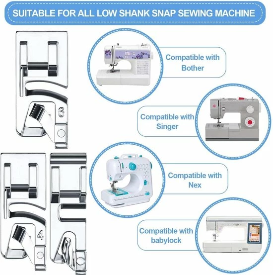 Deze naaimachine Voetjes set is erg handig, vooral het scala aan maten. De stukken zijn goed gemaakt en elk stuk produceert een goed gevormde zoom.