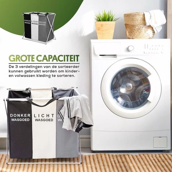 Dankzij het slimme design van deze wassoorteerder wordt het doen van de was een stuk makkelijker en sneller. Zo heeft deze handige wasmand een aantal kleur gecodeerde vakken om je witte was, donkere was en ondergoed en sokken te scheiden en sorteren voorafgaand aan het wassen. Ieder vak van de wasmand heeft een grote capaciteit, waardoor je genoeg ruimte hebt voor al jouw kleding. Zodra het vak vol zit leeg je deze in de wasmachine en hoef je je niet meer druk te maken over het sorteren!