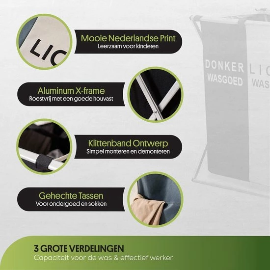 - Makkelijk & snel de was sorteren โ Gooi je kleding nadat je het gedragen hebt in het juiste vak en bespaar tijd tijdens de wasdag!