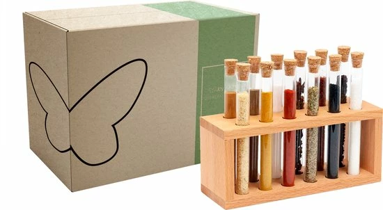 - Inhoud: 12 glazen kruiden reageerbuisjes