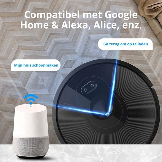 120 Minuten looptijd En Zelfopladend – Met een oplaadbare batterij kan de robotstofzuiger 120 minuten continu werken, wat geschikt is voor het reinigen van alle huishoudelijke of openbare plaatsen. Bij een laag batterijvermogen gaat de robotstofzuiger terug naar het opladen automatisch basis.