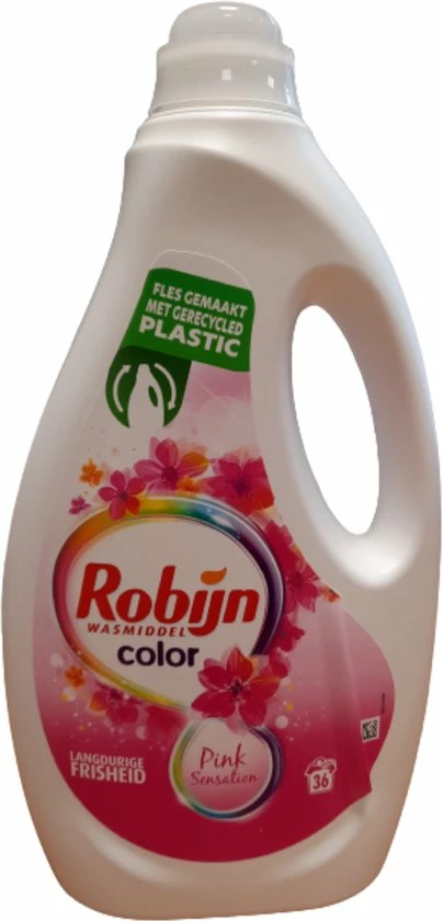 Slechts één dopje is genoeg voor een extra lange frisse geur. Elke fles Robijn Color Pink Sensation Vloeibaar Wasmiddel is goed voor 36 wasbeurten.