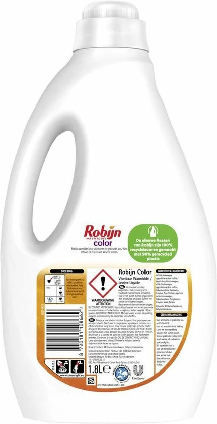 Robijn gebruikt verbeterde en mooiere wasmiddelflessen die ervoor zorgen dat je nog beter kunt schenken en dat de flessen niet lekken. Bovendien zijn de flessen gemaakt met 70% gerecycled plastic en zijn ze 100% recyclebaar. Op deze manier draagt Robijn bij aan een duurzamere manier van wassen.