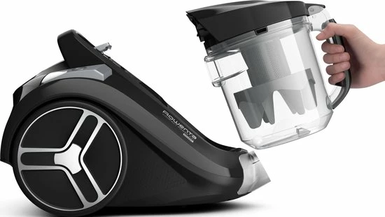 De Rowenta Compact Power Cyclonic XXL RO4825EA – Stofzuiger zonder zak is krachtig en heeft, ondanks zijn kleine design, een grote inhoud β ideaal voor het schoonhouden van elk huis. De grote XXL inhoud van 2,5 liter maakt schoonmaken makkelijker omdat je de bak minder vaak hoeft te legen. Het gestroomlijnde, compacte design is eenvoudig op te bergen; zelfs in de kleinste kastjes of bergingen. Ontdek deze zakloze stofzuiger die ontworpen is voor maximaal gebruiksgemak, met een eenvoudig te legen stofbak. Langdurige en grondige schoonmaakresultaten zijn binnen handbereik dankzij de geavanceerde Cycloontechnologie die zorgt voor een diepe reiniging en effectieve scheiding van lucht en stof. Dankzij de krachtige combinatie van een EffiTech-motor en efficiΓ«nte zuigmond zul je elke dag in een handomdraai je vloer schoon hebben.