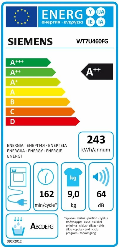 Het autoDry-systeem van de Siemens WT7U460FG warmtepompdroger, regelt de temperatuur en vochtigheid in de droger. Dit zorgt voor een betere bescherming en resultaat van je kleding. De condensor wordt zelf gereinigd, waardoor je minder onderhoud hebt aan de droger. Droog je liever hygiΓ«nischer? gebruik dan het hygiΓ«ne programma. Gebruik de Anti-kreuk fase om minder tijd kwijt te zijn aan strijken. Voor een goed overzicht is de trommel verlichting met LED.