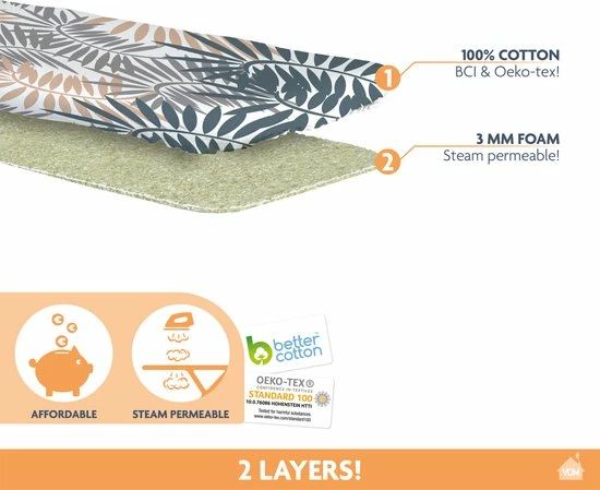 EXTRA DAMPDOORLATEND: Door de 3MM schuim is de Strijkplankhoes extra dampdoorlatend.