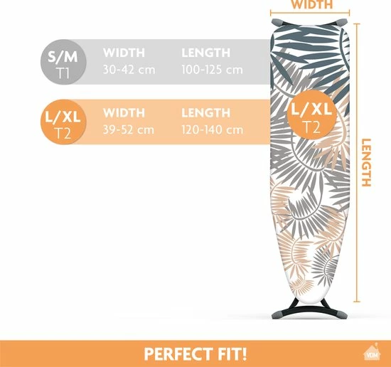 UNIVERSEEL PASSEND: Deze Strijkplankovertrek is uitermate geschikt voor een Strijkplank met een breedte van 39-52 CM en een lengte van 120-140 CM.