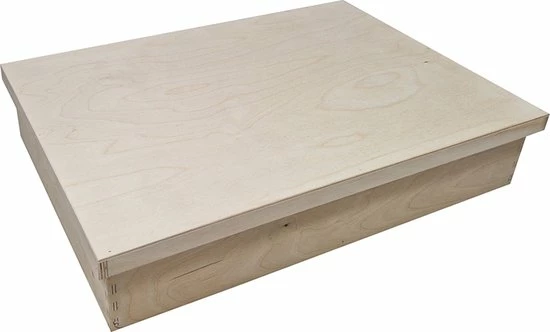 Afmeting deksel speelbak multiplex hoog buitenkant: L 51,8 CM x B 36,9 CM x H 2,4 CM