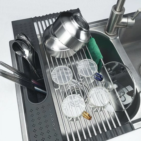 Makkelijk in gebruik β Doordat het afdruiprekje opvouwbaar en compact is, kan je het makkelijk opbergen wanneer je het niet gebruikt. Er is genoeg ruimte voor al je servies en bestek, zodat jij makkelijk alles kwijt kan.