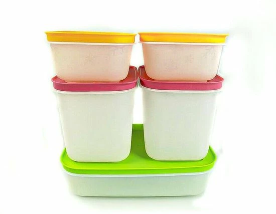 – 2 x 1.1l ( roze deksel ) 15.2 cm lang x 11.4 cm breed x 11.8 cm hoog.