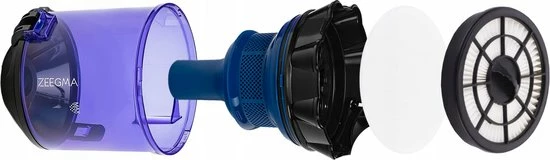 Deze Zonder Base stofzuiger maakt gebruik van de natuurlijke kracht van de wervelende luchtbeweging waarop de cycloontechnologie is gebaseerd. De lucht wordt met grote kracht aangezogen en in de stofbak gewerveld, waarbij stof en andere onzuiverheden worden afgescheiden wat zorgt voor een opmerkelijke reinigingsefficiΓ«ntie, ongeacht de mate van vulling van de stofcontainer.